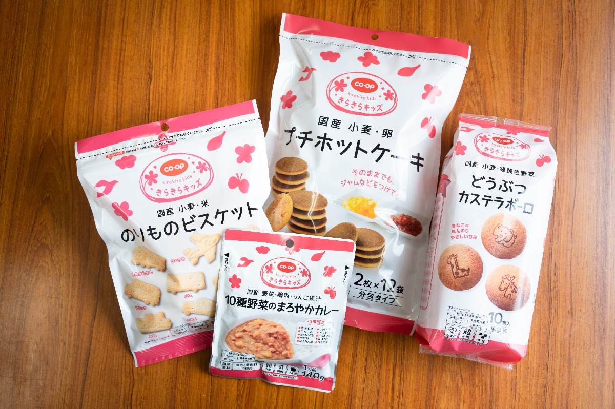 歯が生え揃い、大人と同じ食べ物を食べて慣れていく時期に合わせた食品が揃う「きらきらキッズ」商品。この年代にとって「食育」も重要なポイント!様々な食品に親しみましょう