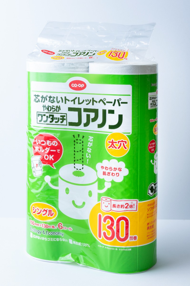 いつものホルダーに付けられる芯のないトイレットペーパー。長さ約2倍の130mの長巻き!