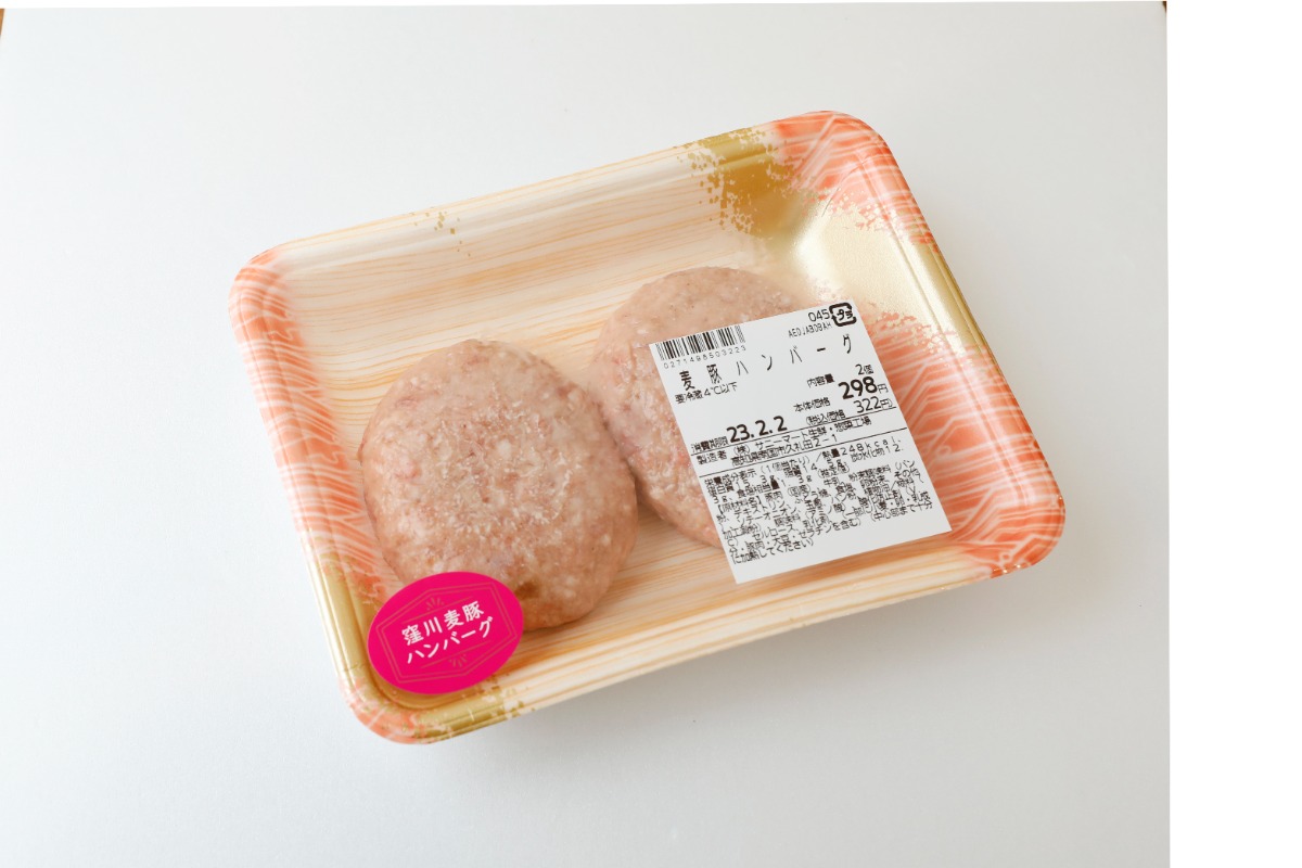 ブランド豚「窪川麦豚」の肉質の良さを存分に生かした、こだわりの「麦豚ハンバーグ」(322円)