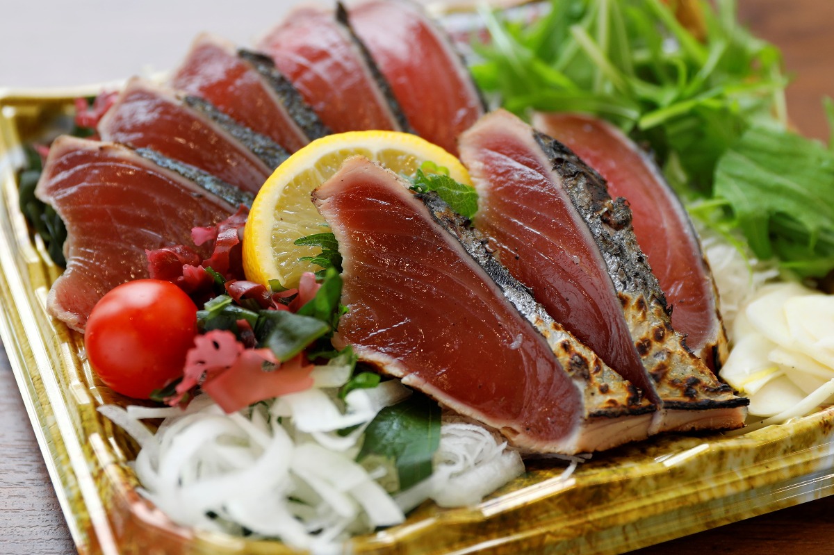 人気ナンバーワンは、本場高知より仕入れた、藁焼き仕上げのカツオのタタキ。素材のカツオは刺身でも食べられるほど新鮮!