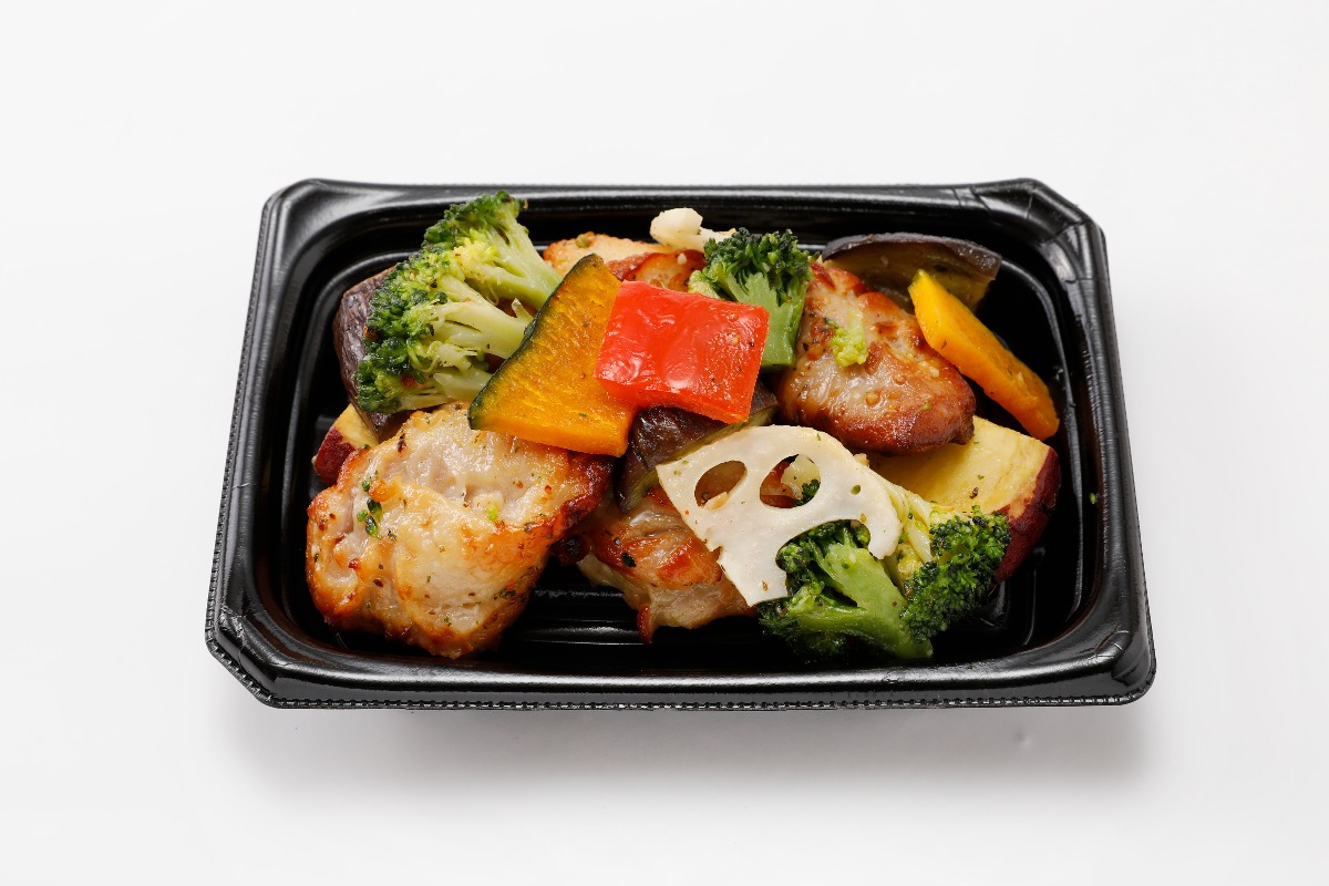 6種の彩り野菜と鶏モモ肉を食べやすい大きさにカットし、バジルオイルで香ばしく焼き上げた、ビールに合う人気商品!