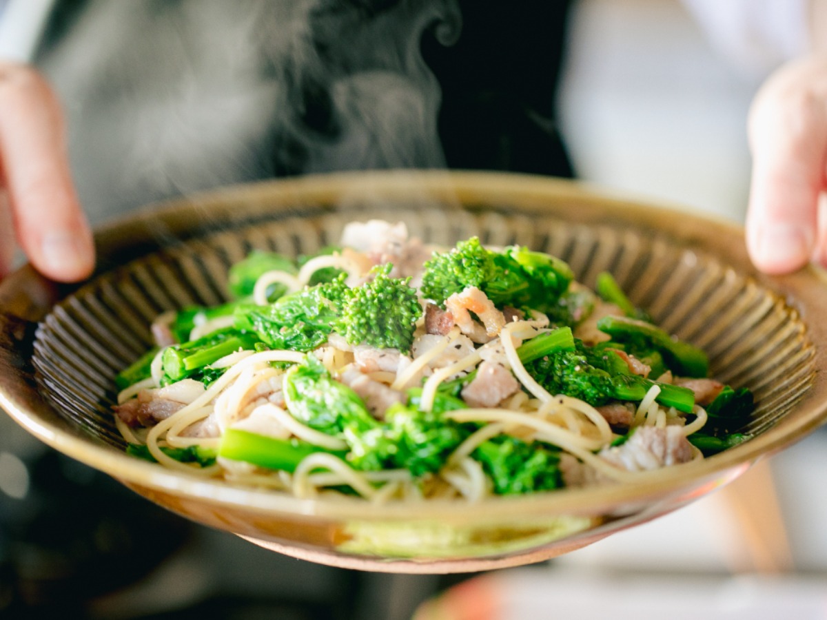 【恵み豚】品種・肥育方法・加工の3点にこだわり、フジの指定農場で飼育。麦類または米を給餌することで口どけが良く甘みのある脂肪に。風味のよい「恵み豚」は春野菜との相性も◎
