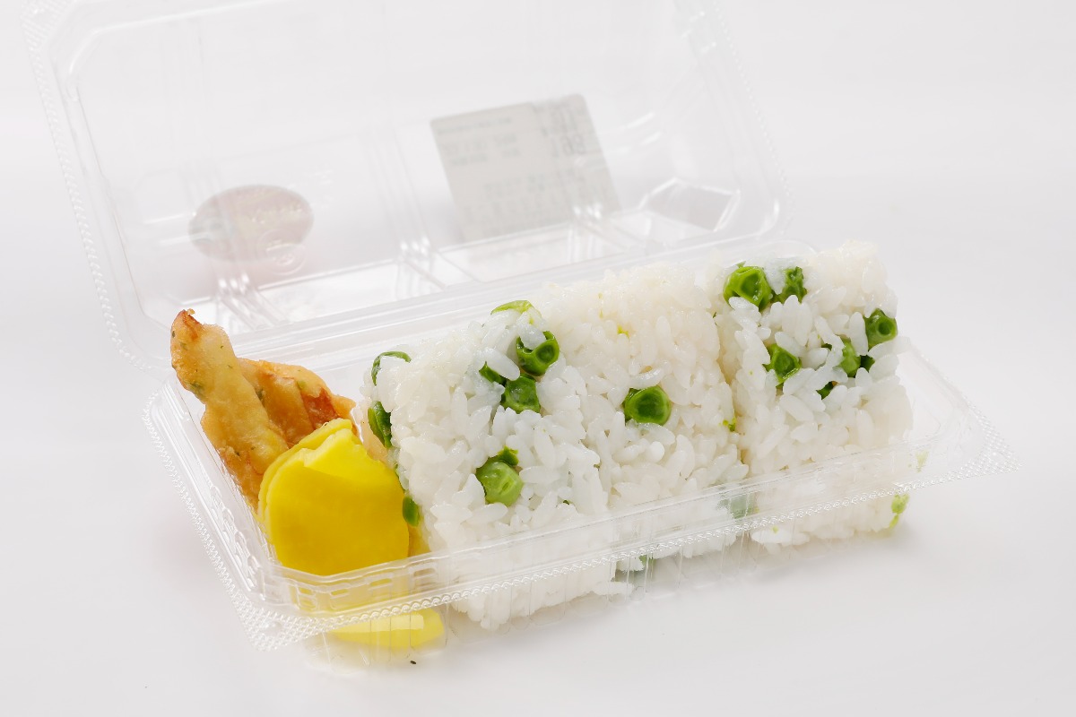 ほんのり塩味のきいたご飯に色鮮やかなグリーンピースを混ぜ込んだおむすびセット。