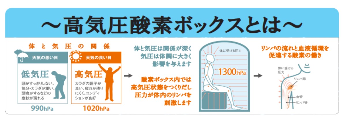 酸素カプセルは、高気圧状態を作り出し、体内のリンパを圧力で刺激することで、身心に癒やしを与えてくれます♪