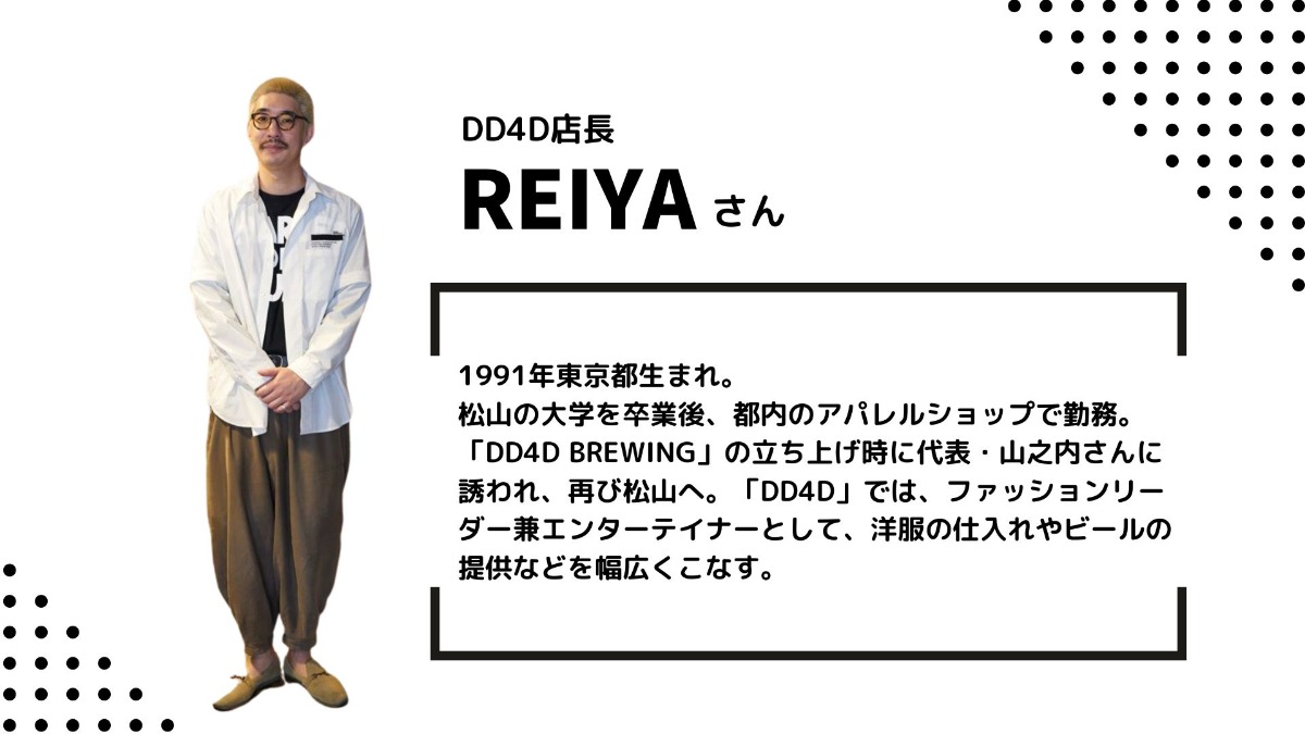 2019年の醸造所稼働以来、毎週のように新作を出し続け、愛媛のクラフトビール業界をリードする「DD4D BREWING」。今回は、5月に4周年を迎えた松山市千舟町の「DD4D BREWING & CLOTHING STORE」の店長・REIYAさんに「DD4D」とクラフトビールの魅力をインタビュー!