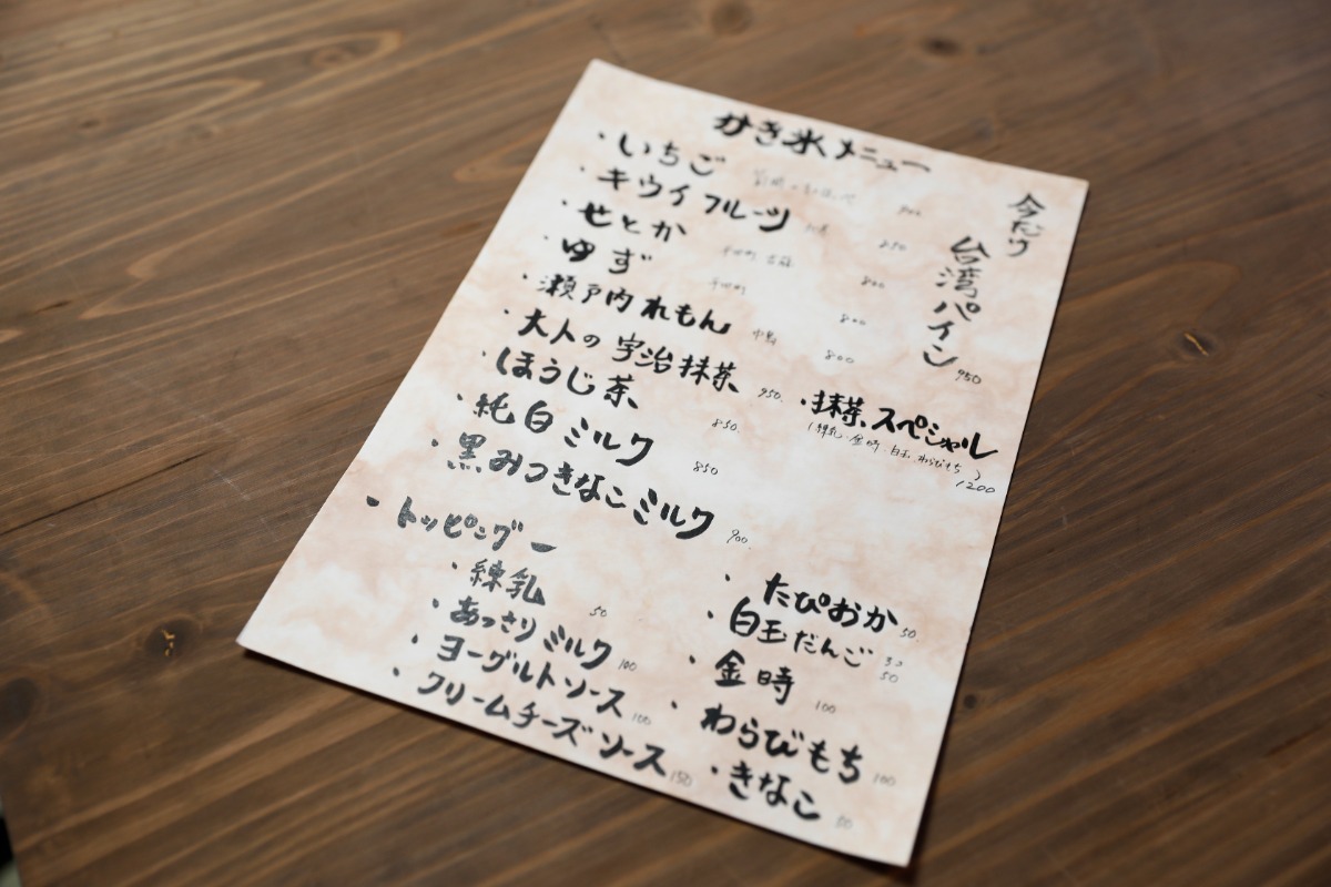 小豆や自家製餡子、黒糖わらびもちのトッピングがついた「抹茶スペシャル」と通常の「抹茶」メニューもあります。