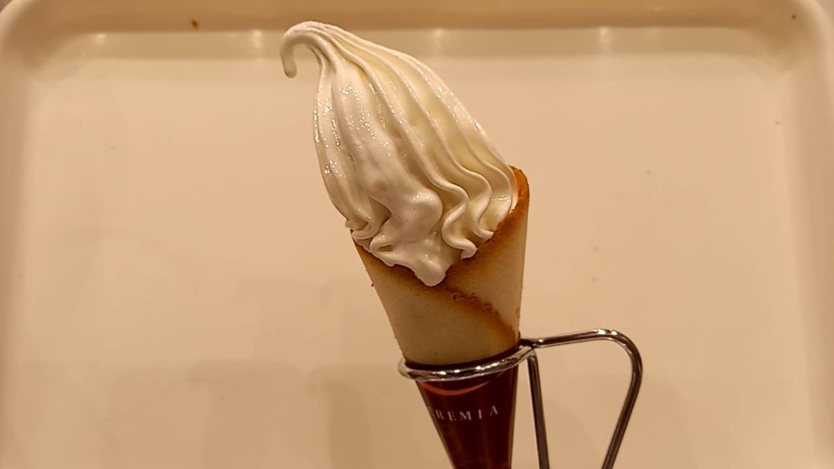 北海道産の生クリームを使用し、濃厚で味わい深い仕上がりのソフトクリーム。特にコーンは、香ばしさとサクサク感が楽しめるラングドシャを採用していて、一層上の贅沢感を演出しています。他にもチョコ・抹茶・イチゴ・ミルクとチョコのミックスがあります。