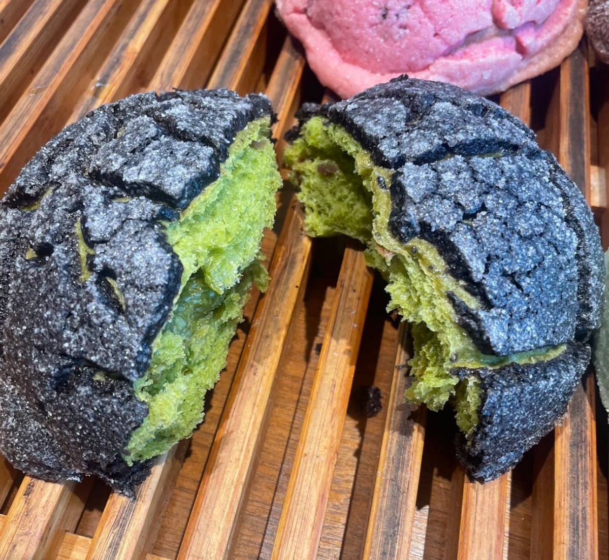 なんと「漆黒の抹茶クランベリー」は、外側が黒色で内側は緑色なんです!