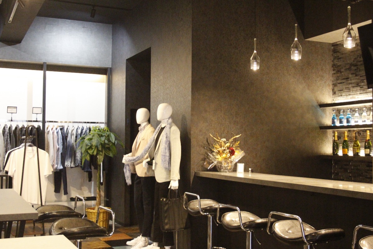 四国でも珍しい「MEN'S BIGI」を中心に取り扱うアパレルショップであり、ショットバーでもある、洋服や雑貨を見ながらお酒を楽しめる店。