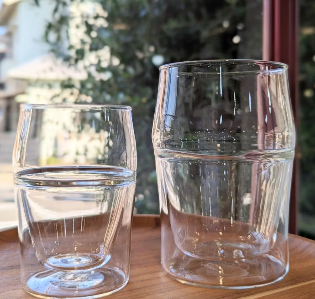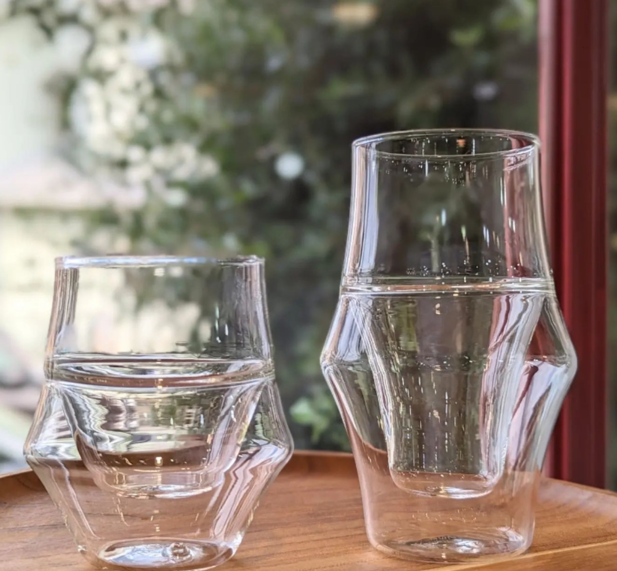 手に持つ下部はダブルで機能的。飲み口はシングルで口当たり良く、計算し尽くされたデザイン性の高いグラス。