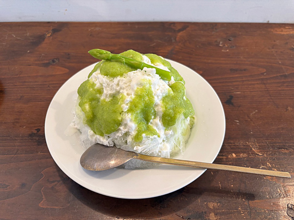 写真は期間限定のアスパラかき氷!