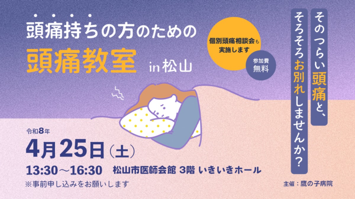 【参加無料】頭痛持ちの方のための「頭痛教室 in 松山」(松山市・4/25開催)