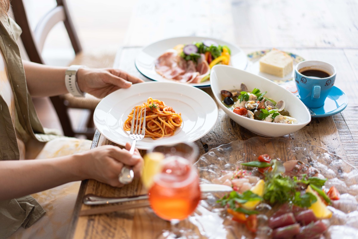 地元や四国の新鮮食材を使った「ランチコース」(3,200円※パスタ付き)。素材の味をシンプルに楽しめます!