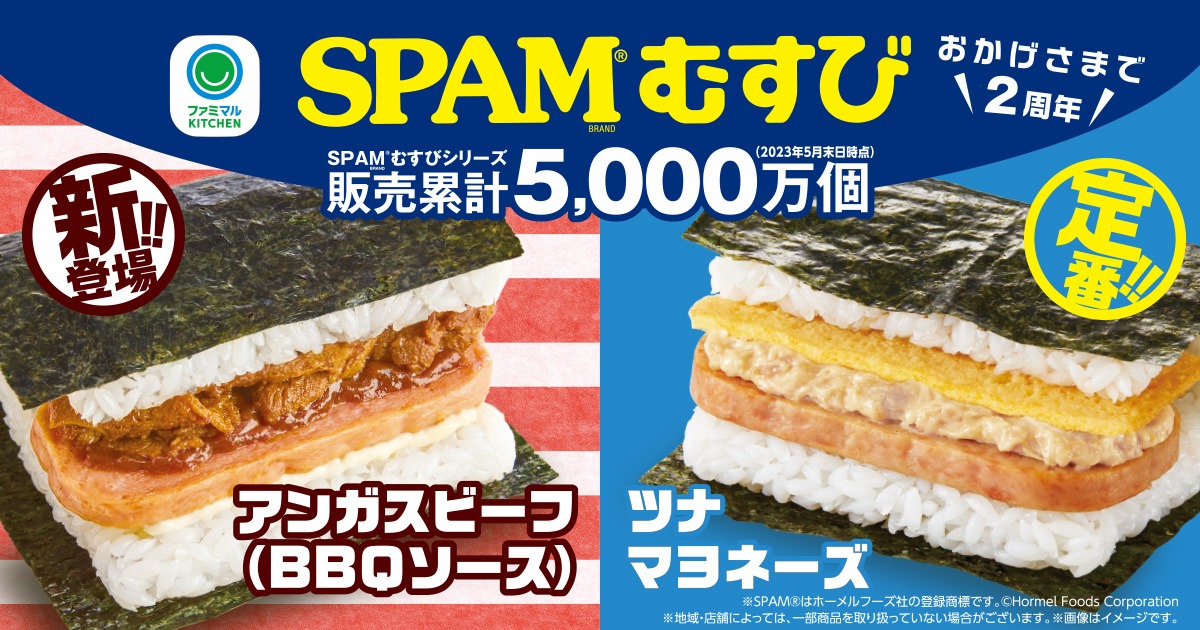 「ファミリーマート」の販売累計5,000万食突破の「SPAM®むすび」にアンガスビーフBBQソースが新登場!