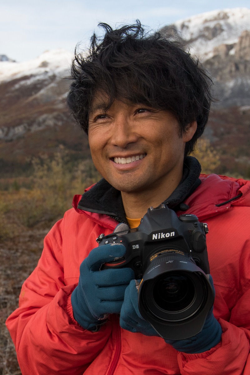 1972年愛媛県松山市生まれの写真家。アラスカ大学進学後、キャンプや撮影の技術を独学で習得。現在は1年の約半分をアラスカで過ごす。夏季は北極圏や無人島、冬季は氷河の上に自作するかまくらでひとりで生活をしながら動物や風景、オーロラの撮影に専念する。