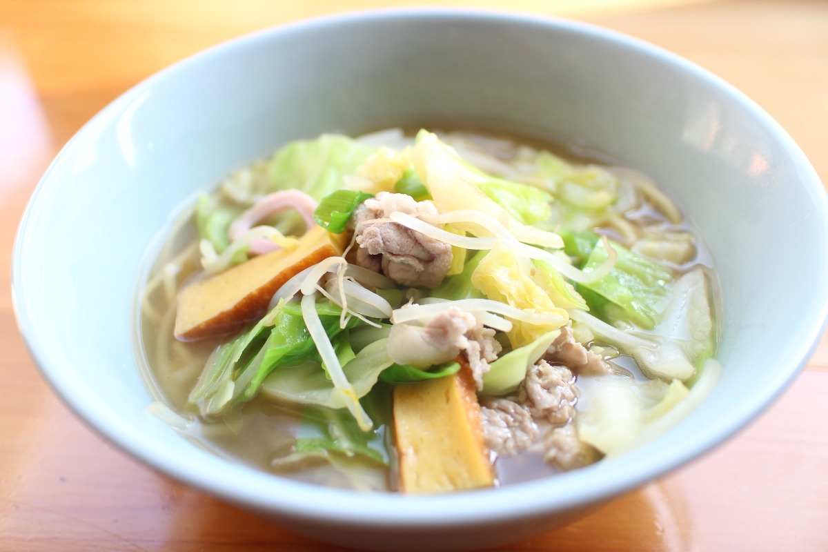 中華そば野菜盛(野菜2倍)やなべ焼きうどん、いなり寿司やおにぎりもあります。