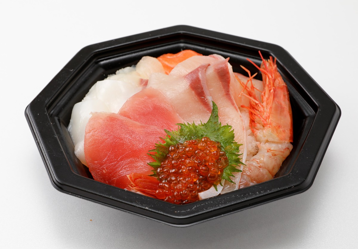 目利きの担当バイヤーが地元の水産市場で仕入れてきた新鮮な魚介が並ぶ。チラシには載せていないイチオシ商品や、贅沢な気分が味わえる海鮮丼も! ちなみに、ウロコ取りや三枚おろし等の基本的な調理は無料サービスのため、希望する場合は鮮魚コーナーのスタッフに気軽に相談してみて。