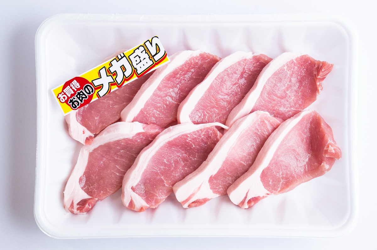 ファミリー向けのお買い得な「メガ盛りパック」は、「メガ盛り」のシールが目印!