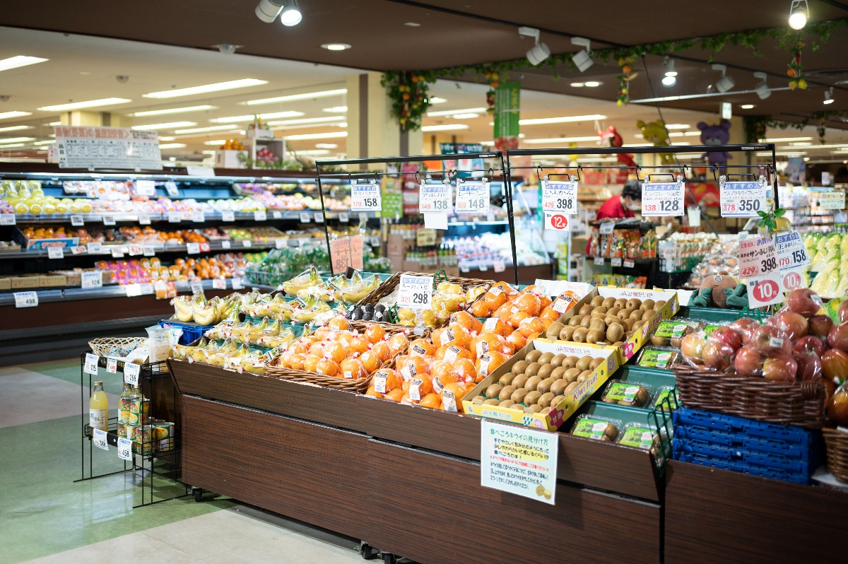 店頭に並ぶ野菜や果物は、地元・愛媛県産のものを中心に仕入れている。また、通常の卸売業者の他、約200件もの農家と契約しており、毎日50件前後の農家から直送された朝採れの野菜が揃う。日によっては品揃えも変わるため、毎日様々な野菜との出合いを楽しめるのも青果コーナーの大きな魅力だ。