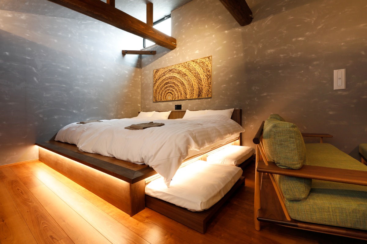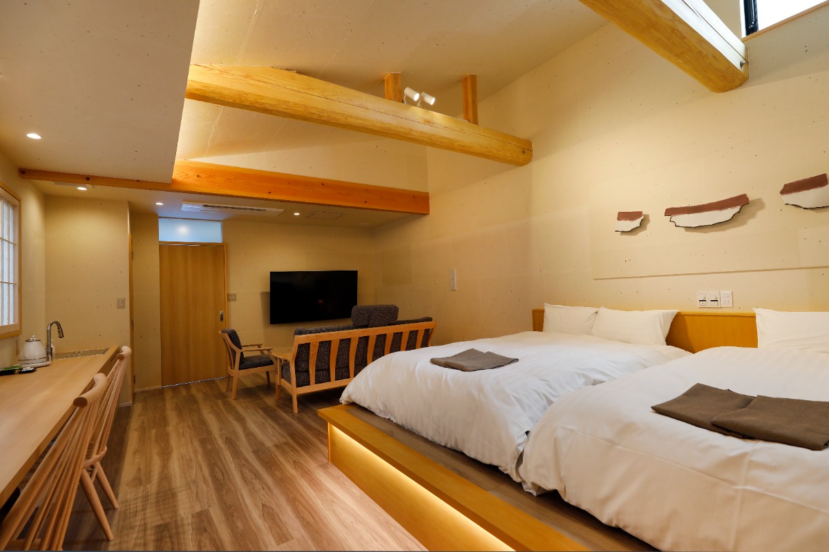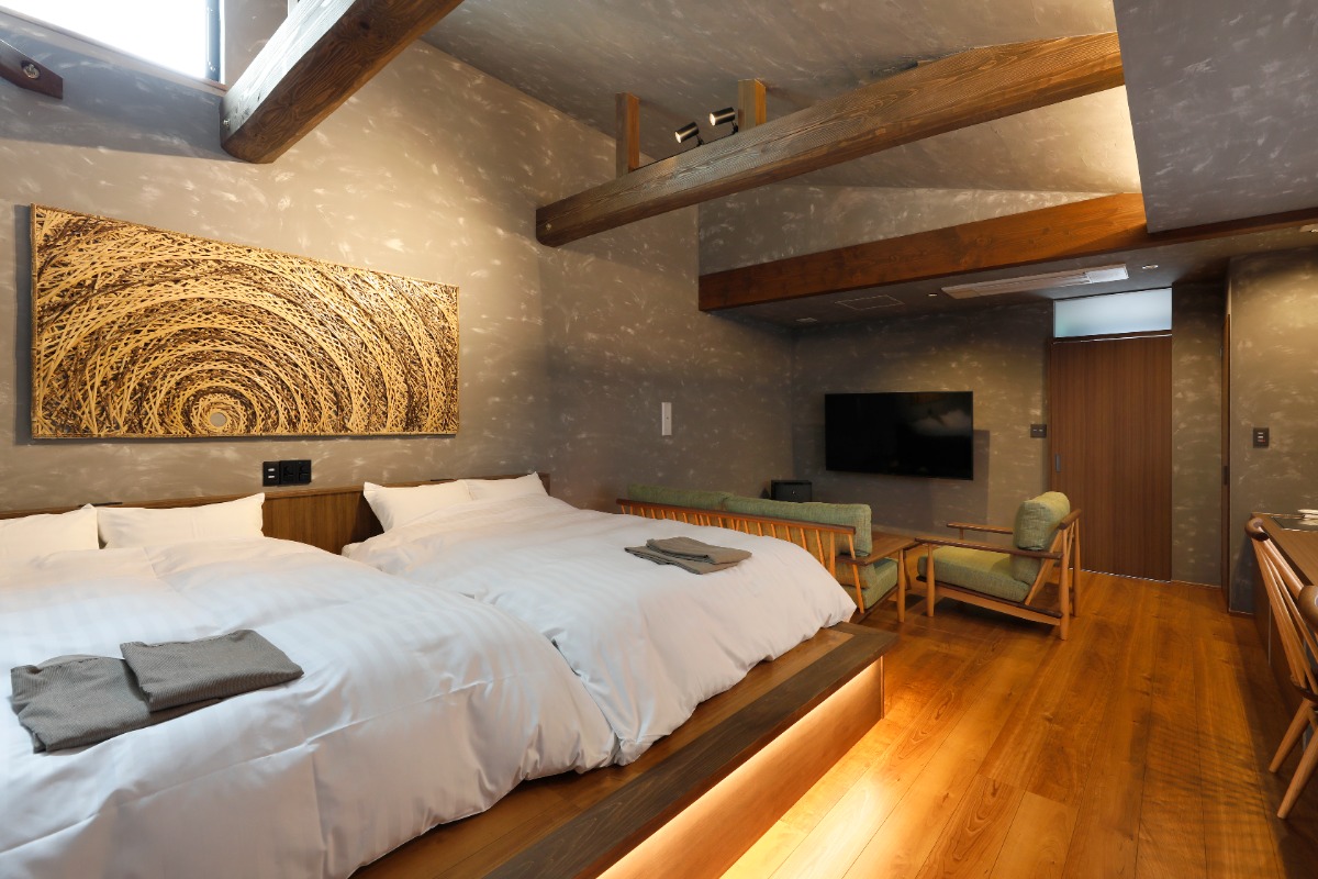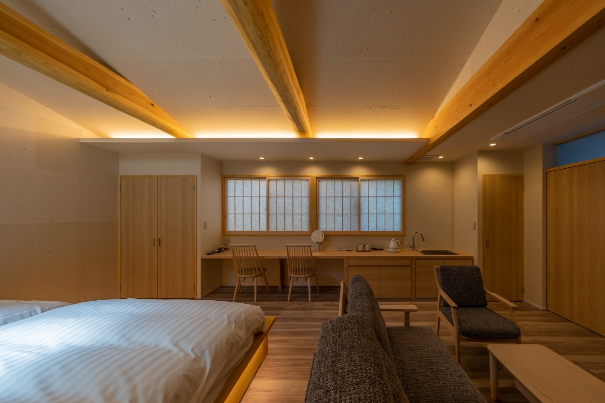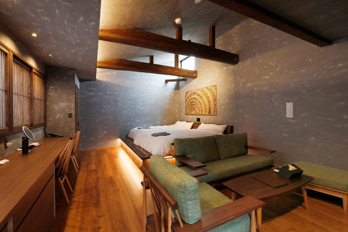 客室はメゾネットタイプ。一日二組限定なので、他人を気にせずにゆっくりと過ごせる旅館です。