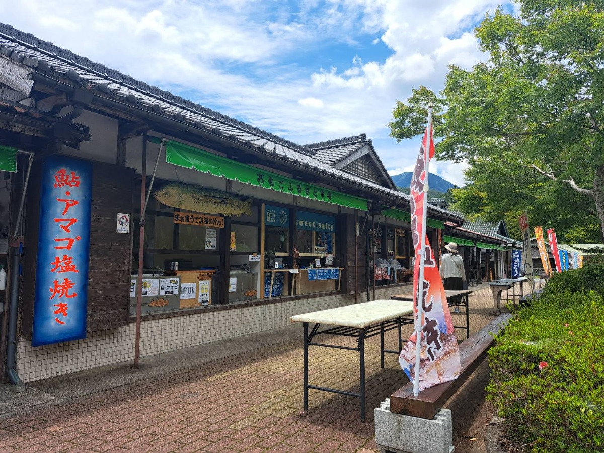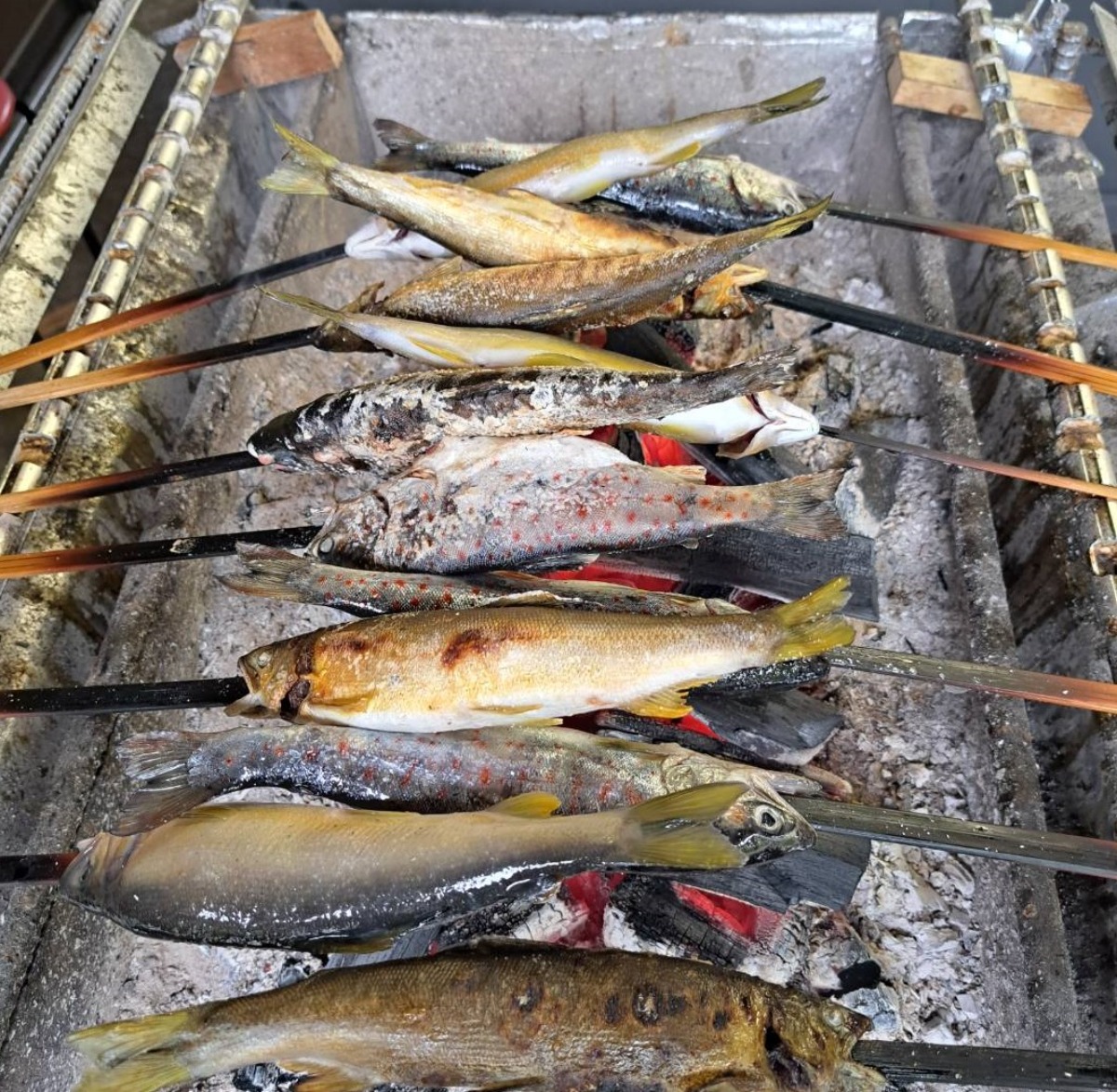 美味しい産地から取り寄せた「あゆ」や「あまご」を目の前で焼いてくれます。脂の乗った炭火焼きのジューシーな魚を、豪快にかぶりついて食べましょう!