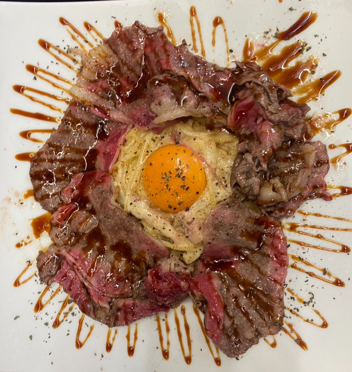数量限定の肉料理やパスタなど6種の贅沢メニューを提供。その中でもおすすめは『肉まぶし』(2,500円)。自家製タレで食べても良し! お茶漬けで食べても良し! 他にも薬味を入れたりといろいろな食べ方が楽しめます。ごはんの量を150g・250g・350gと選べ、味噌汁・サラダ・デザートはおかわり自由なのも嬉しいサービスです。