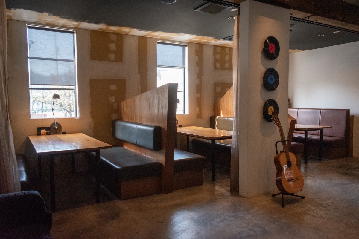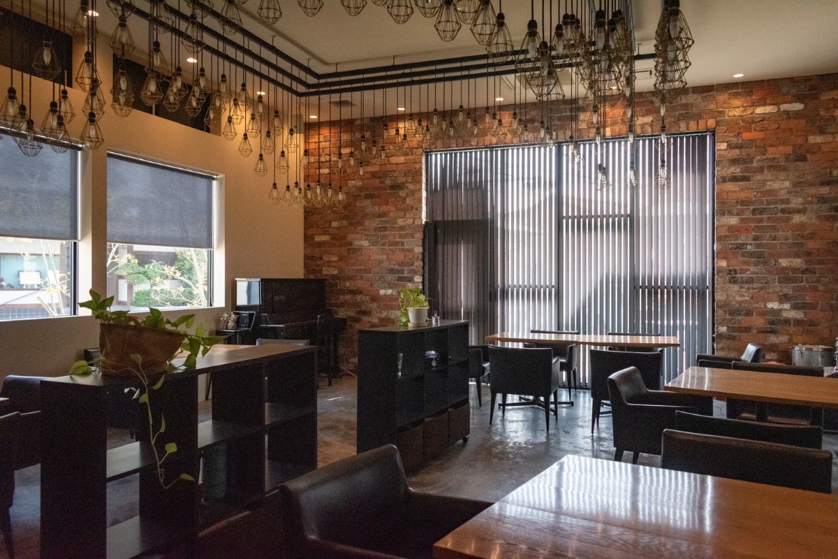 ギターやレコードがインテリアとして飾られている店内には、ソファー席や、テーブル席、カウンター席があり開放感のある空間になっています。さらにワンちゃん連れもオッケーなテラス席なども完備され、おひとり様、ファミリー、ペット同伴の人など、みんなが気軽に通える雰囲気が魅力の一つです。