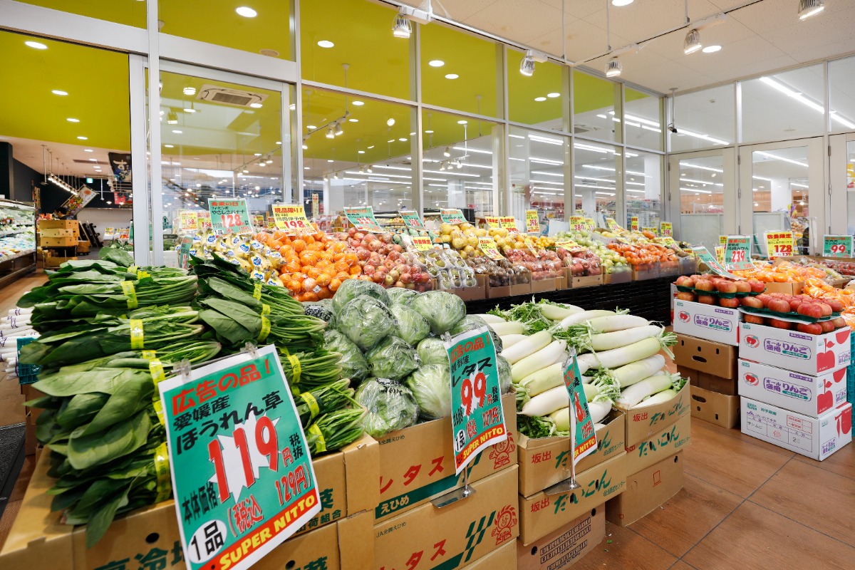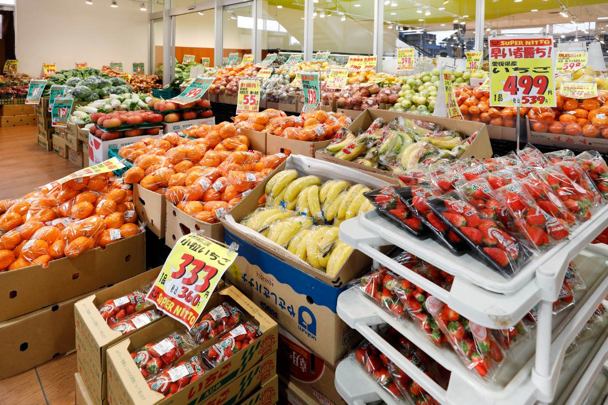 「SURPROSE!!」をテーマに掲げる「スーパー日東」。「毎日の暮らしに、お客様が驚くくらいの喜びを」という想いのもと、ボリューム・品揃え・価格の三拍子が揃った商品を展開している。青果や魚などは店舗ごとに買い付け、加工を行うことで新鮮さと客層に合わせた品揃えを実現。さらに、ほぼ毎日特売日を設定し、地域の人々に嬉しいサプライズを届けている。
