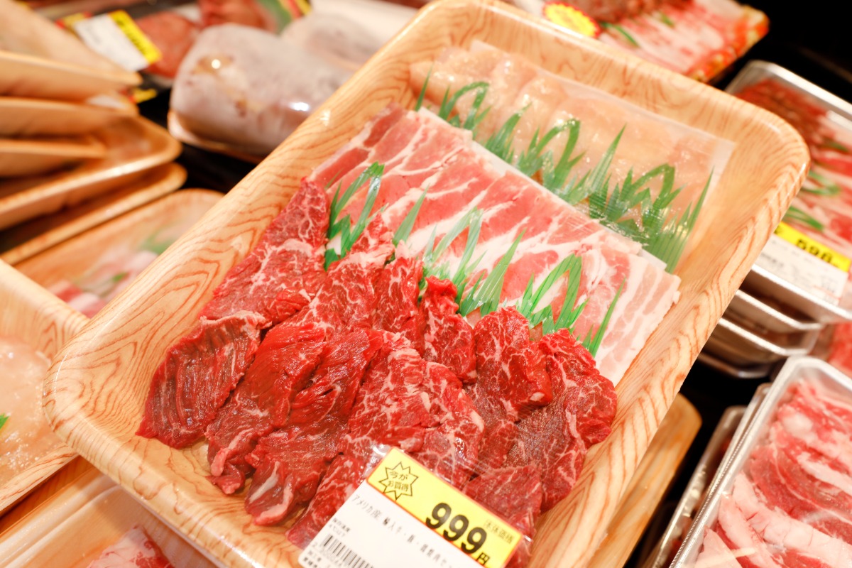 ブロックで仕入れた肉を店内で加工するため、鮮度の良い商品をお手頃価格で提供できるのが強み。驚きのジャンボサイズから通常サイズまで大小様々なパック商品があり、家族構成に合わせてベストチョイスが可能。牛・豚・鶏がバランスよく入ったBBQパックなどバラエティ豊かに揃う。