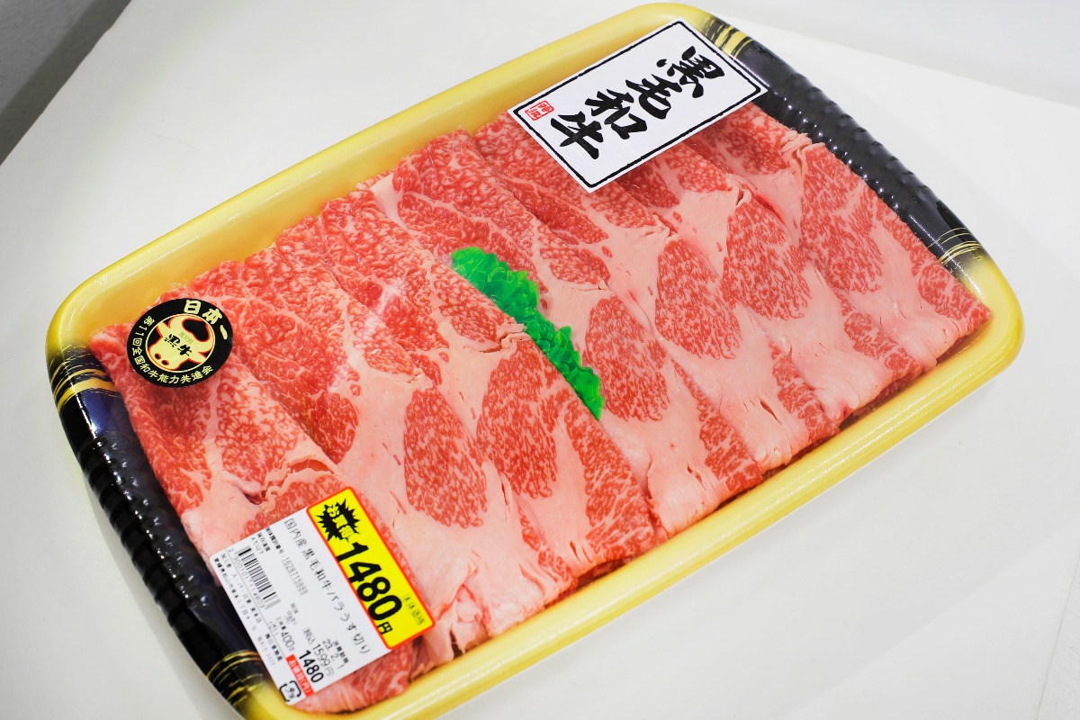 サシの美しい国産黒毛和牛がこの値段はお買い得! あっという間に売れていくのも頷ける