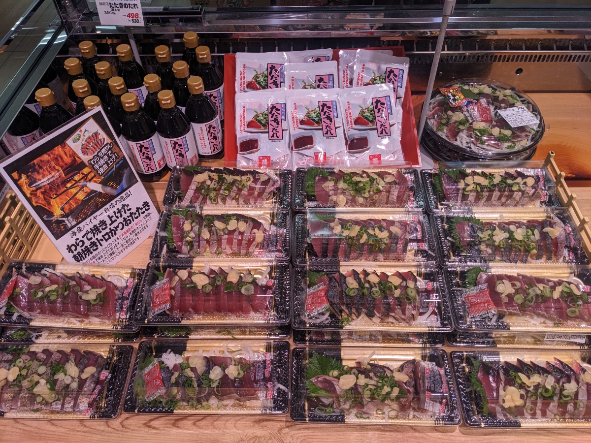 久万高原町の米わらを燃やし、毎朝手作業で焼き上げるカツオのタタキも大人気!