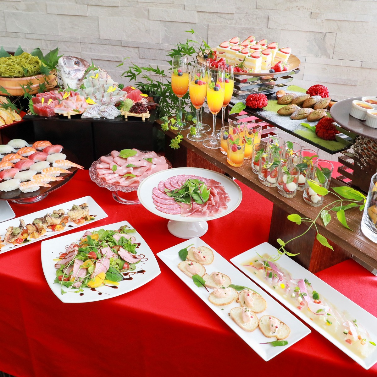ホテルクオリティの料理が堪能できるコース(ひとり5,000円~)と、冷菜からデザートまで自由に楽しめるビュッフェ(ひとり4,000円~)から選べる贅沢な内容です。