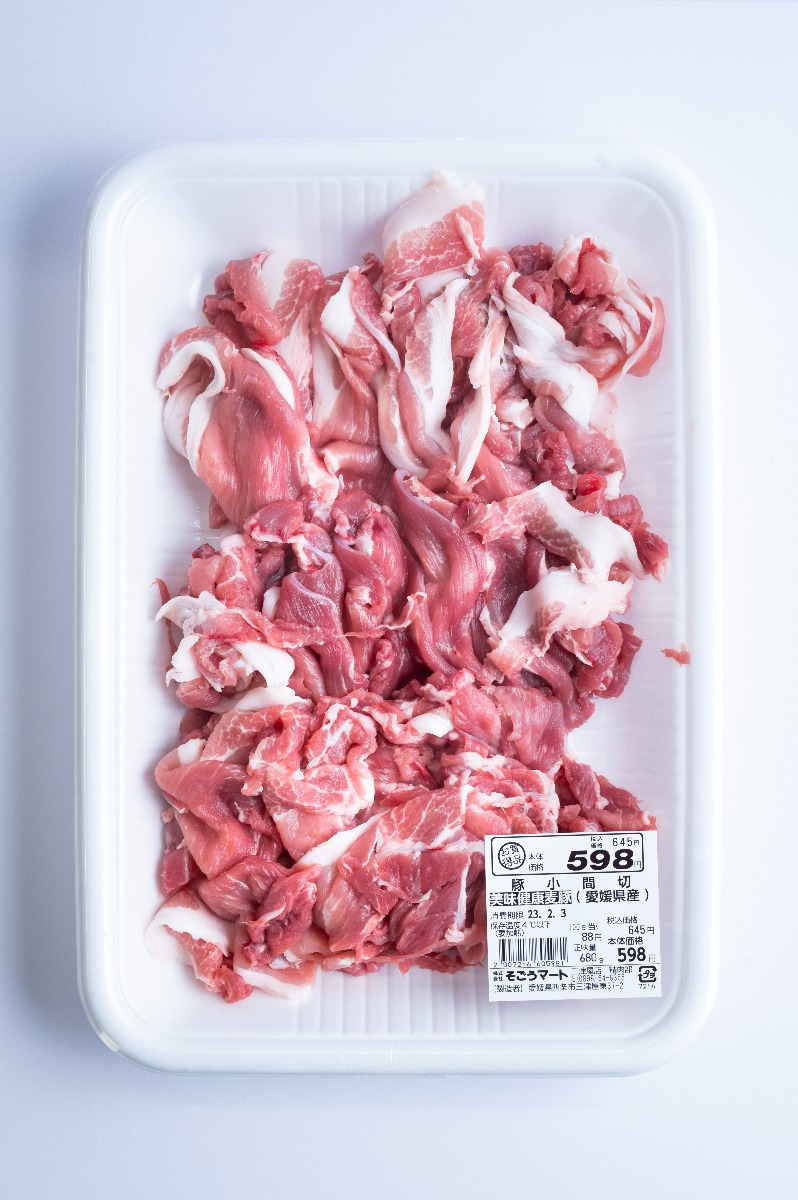 豚独特の臭みを抑えた愛媛県産美味健康麦豚の小間切れ。お買い得品として人気の商品