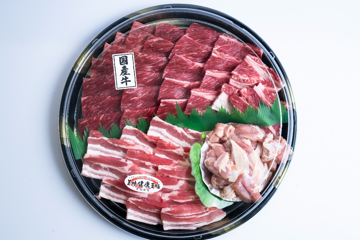 国産牛、美味健康麦豚、鶏肉のファミリーセット。アウトドアでのBBQなどにもおすすめ!