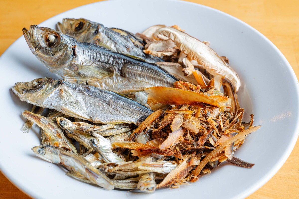 イリコ・煮干し・干し椎茸・サバ・カツオ節でしっかりとダシをとった香り高いスープは平打ち麺によくからみます。