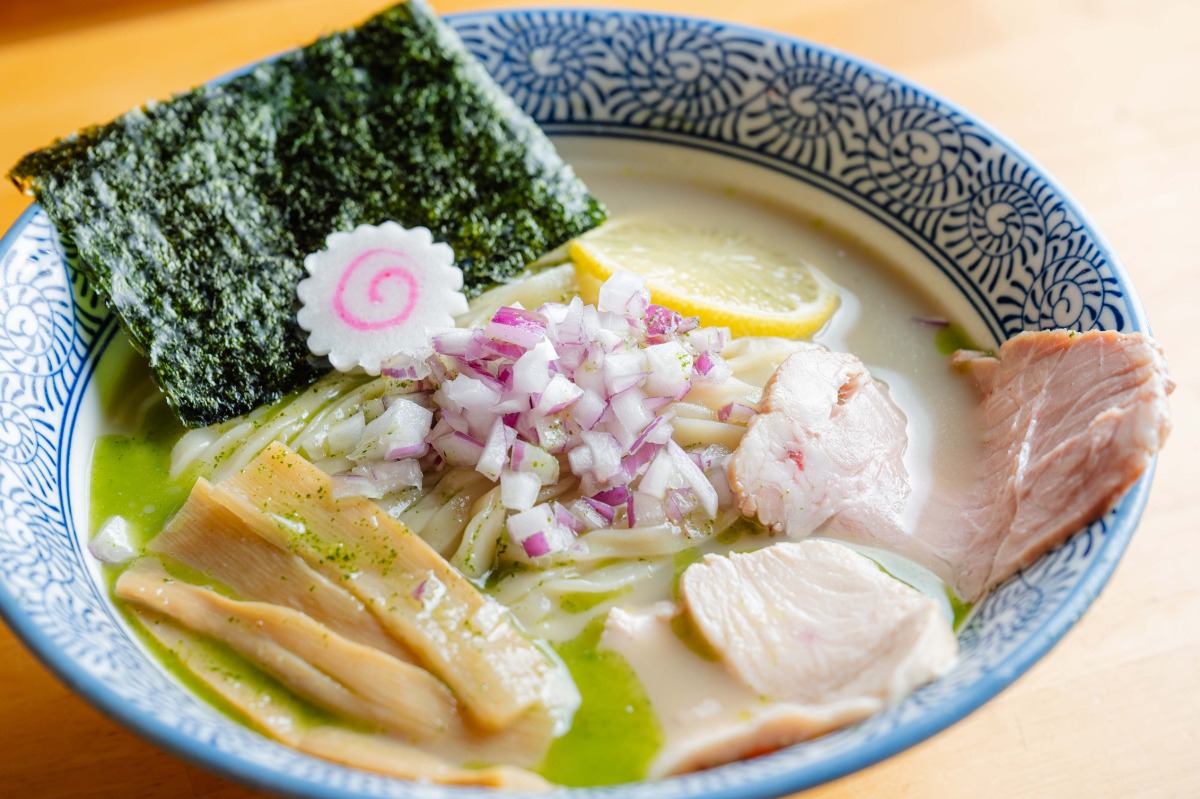 とろみのある濃厚なスープに絡み合うもちっと食感の平打ち麺と、風味が際立つジェノバ風ソースが三位一体となった味わいは一度食べると誰もが虜になること間違いなし。