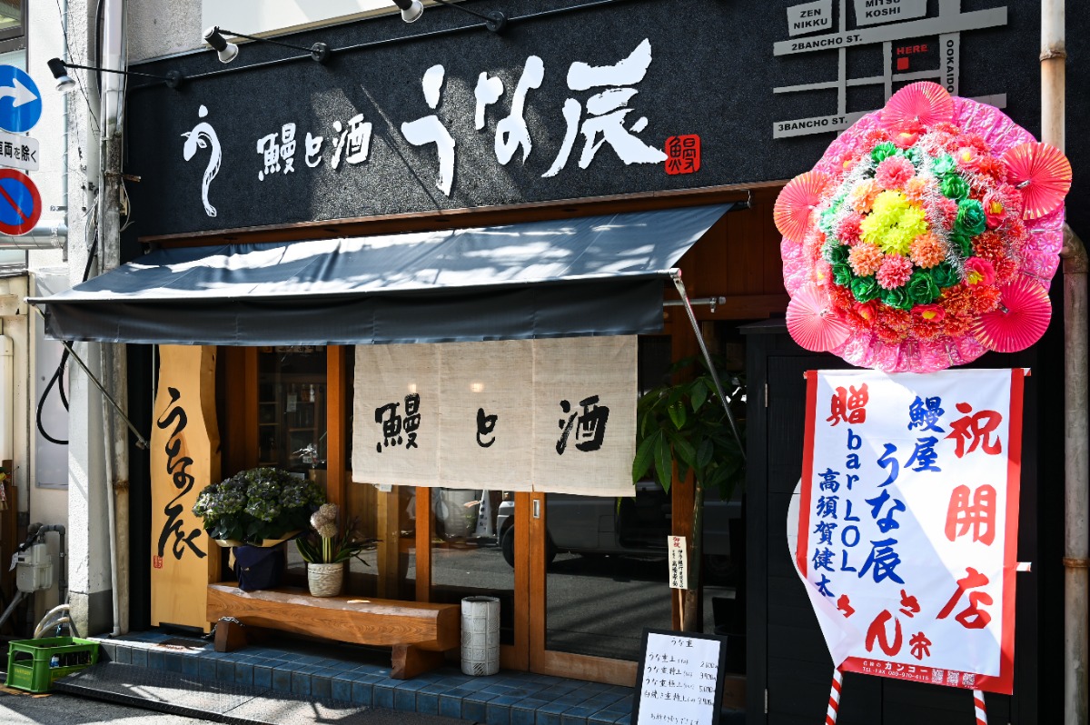 店の奥から、鰻を焼く香ばしい香りが漂う店内。ここは5月10日にオープンしたばかりの鰻と酒の店「うな辰」。店内は落ち着いた雰囲気で、テーブル席だけでなく、カウンター席にあり、昼はうな重メイン、夜は一品料理なども楽しめる鰻居酒屋のような新しいスタイルの鰻屋さんです。