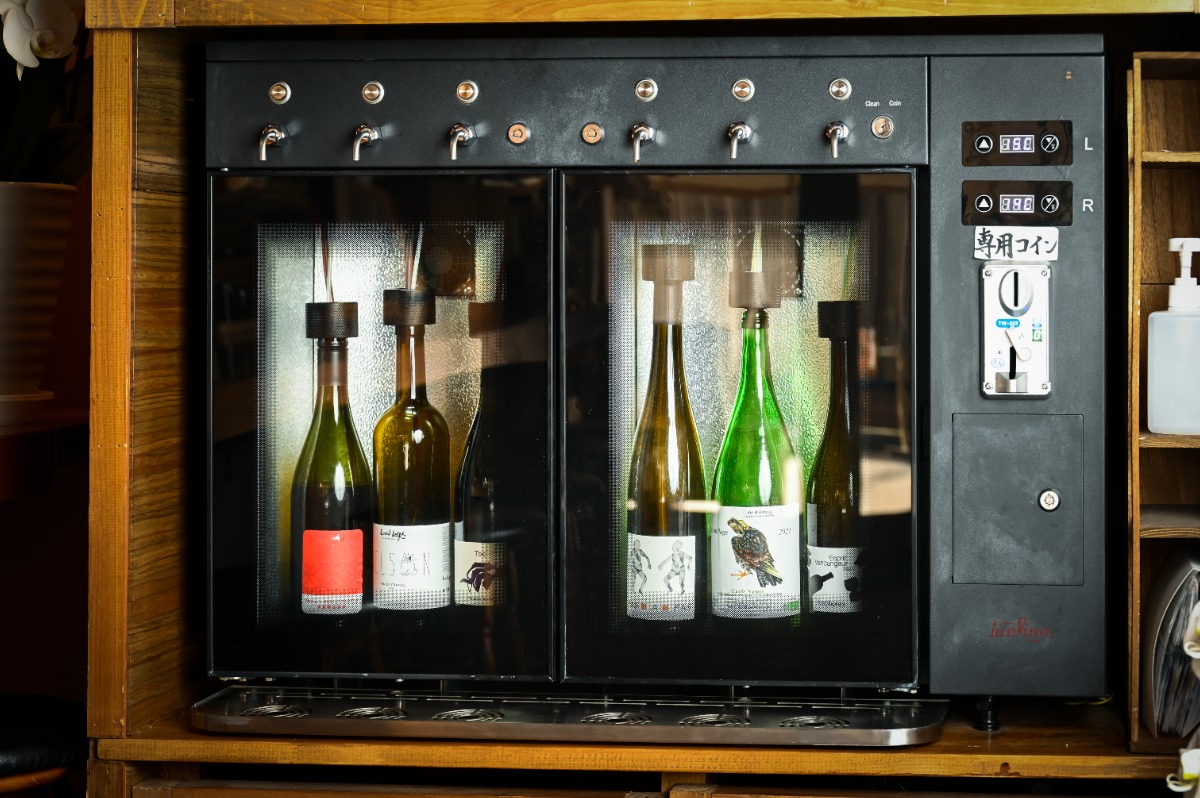 最近都会では導入されているお店も多いそうですが、愛媛ではまだ数件程度。コインを入れると60~70mlの少な目の量のワインが注がれるので、飲み比べに最適です。お料理に合わせて、好きなときに好きなものを選べるのもいいですよね!「うな辰」さんでは、お店が落ち着いている時間であればサーバーのみの利用もOKです。