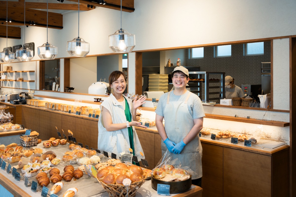 松山環状線沿いにあるお洒落なパン屋さん。ガラス張りになっていて、外からでもパンがずらりと並んでいる様子が見えるので、入る前からわくわくしちゃいます。店内には約80種類のパンが並び、ご近所の方を中心に、年配の方からお子さん連れの方まで幅広い層のお客さんが訪れます!