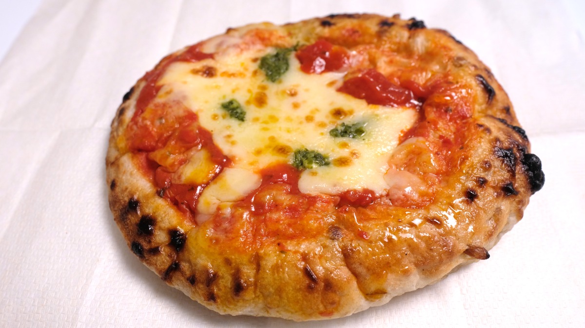全粒粉と米粉をブレンドしたもちもち生地に感動!小さめサイズのピザなので子どももペロッと食べられます。