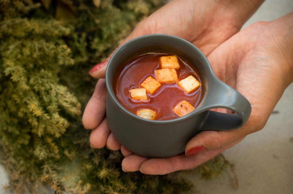 夏季限定の冷製スープはトマトベースでひんやり美味しい!パンのお供にぴったり。