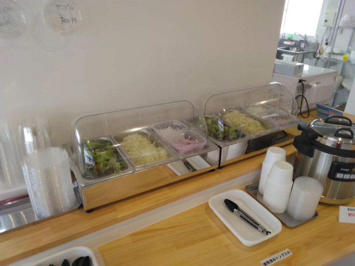 200円・300円・400円の3種類のパックに、旬の野菜を盛りつけます。野菜の内容も豊富で、自分好みのサラダにカスタマイズできます。