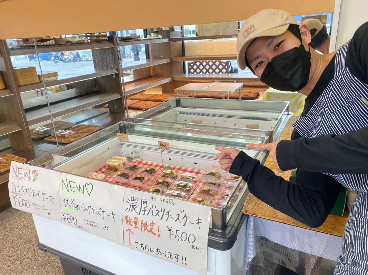 パン屋「charme 松山市和泉南店」の店舗内に、チーズケーキの専門店がオープン。超濃厚なとろける美味しさのバスクチーズケーキは、ノーマル以外にも抹茶やチョコなどの種類も揃う。その日焼き上げたパンで作るフルーツサンドも人気。どの商品も数量限定のためお早めに!
