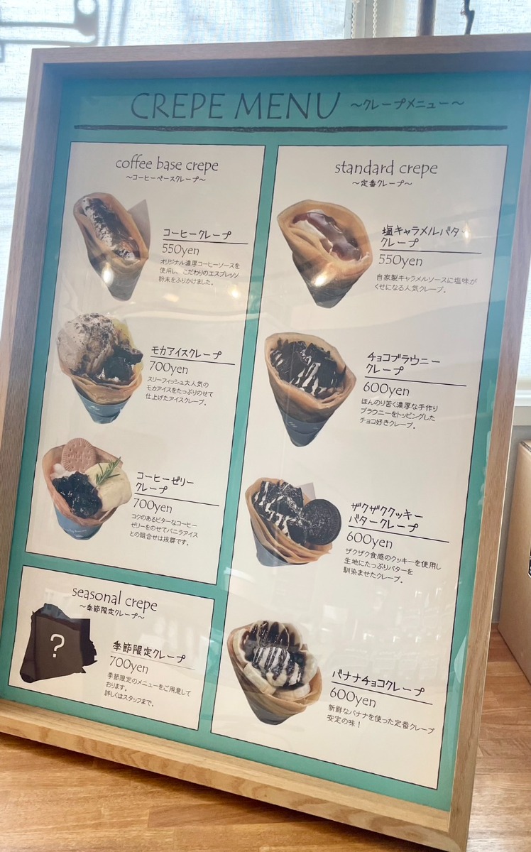 そんなコーヒー専門店だからこそ作れるオリジナルクレープメニューがこちら↓