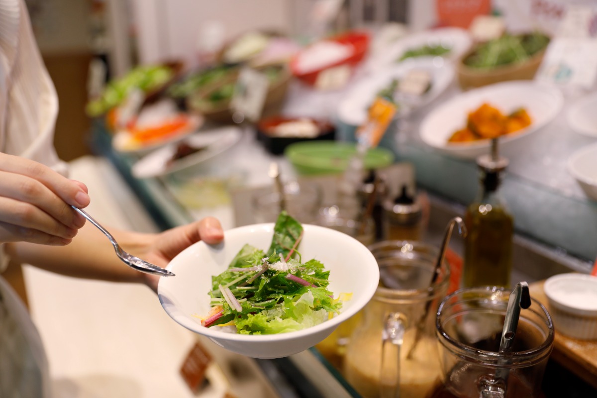 330円(税込)でサラダバーが追加できるのもマルブンさんの特徴。18種類と豊富なラインナップで、4種類のレタスを日替わりで1種類ずつ揃えています。