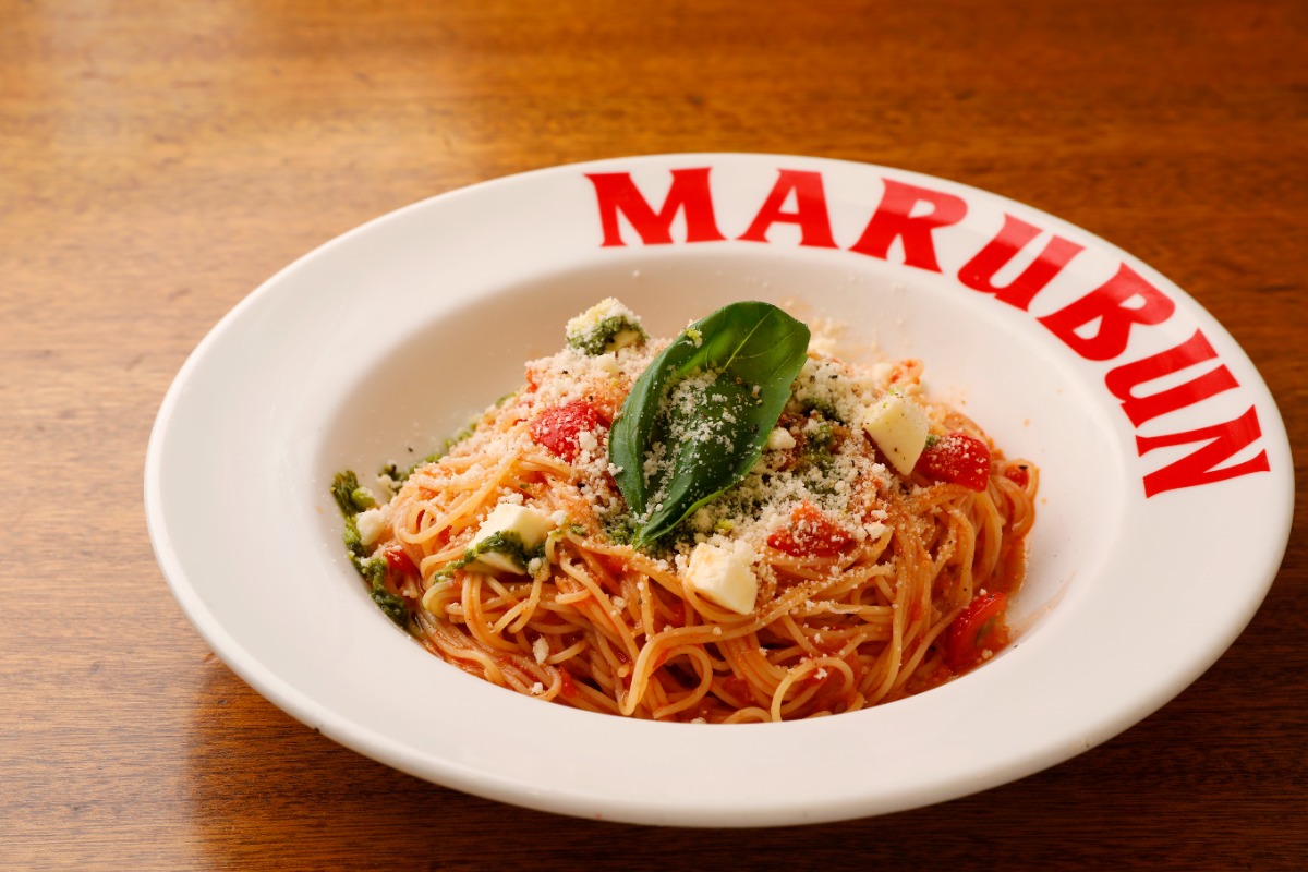 さっぱり風味のトマトソースが絡んだ冷製麺にバジルの香りが引き立ち、味も見た目も清涼感のある逸品。トマトと濃厚なモッツァレラチーズとの相性抜群で、チーズのふわふわ食感もポイントです。