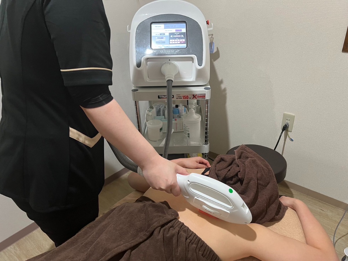最新機器を使用し、しっかりと冷やして光を当てる脱毛。都度払いも可能で、10回~15回で完了する。