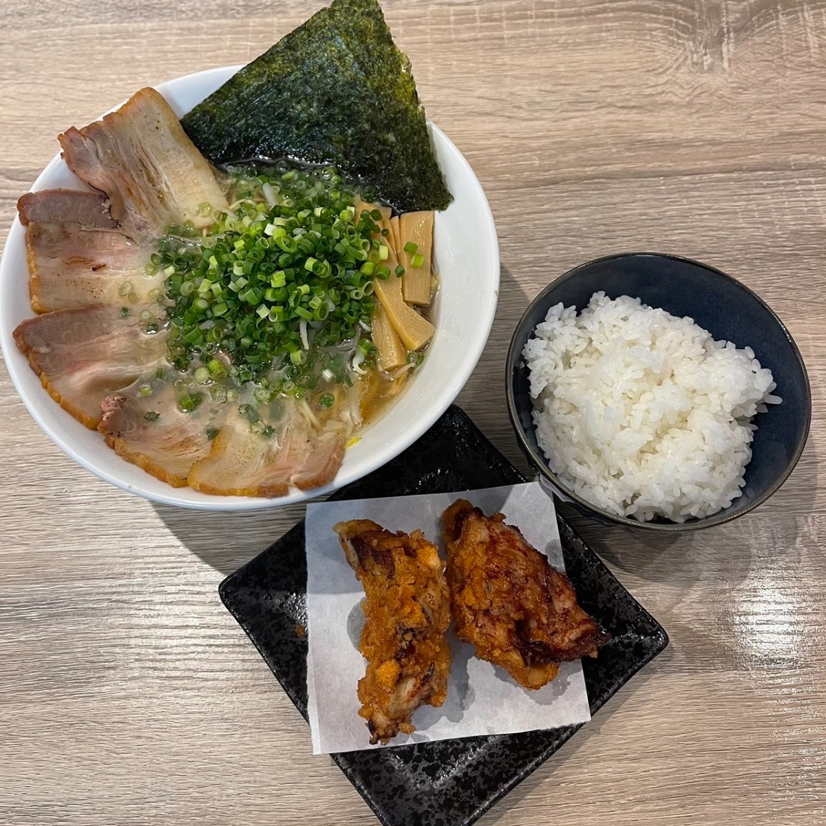 5月にオープンした北条店に次ぐ2号店が登場! 今治店では、ラーメンと唐揚げに特化。厳選された3種類の醤油・国産の魚介・鶏ガラなど、素材にこだわったスープが自慢のラーメンは至福の味。秘伝のタレに1日漬け込んだ唐揚げも人気の品です。11時から14時のタイムサービスでは、おにぎりと唐揚げのセットが無料になるのも嬉しいポイント。