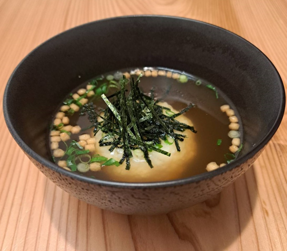 鶏でしっかりダシを取ったスープとカツオベースのダシをブレンドした自家製スープ。鶏と魚介の旨みがギュッと凝縮して深い味わい。〆のお料理にどうぞ。