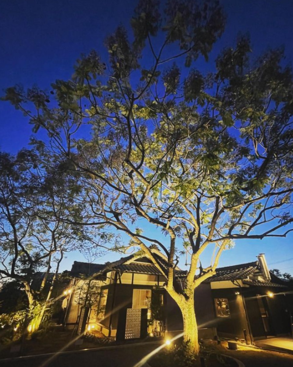 大きな窓があり、外には四季折々の花々が楽しめる庭園があります。ライトアップした庭が堪能できる夜のカフェタイムもおすすめなので、ぜひ一度訪れてみて。